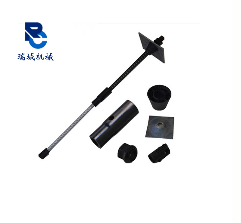组合中空锚杆的组成:由半米的中空锚杆杆体、钢筋和配件五件套 (垫板、螺母、止浆塞、锚头和连接套)组成。